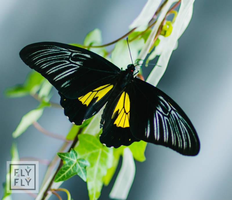 Невероятная бабочка с яркими желтыми пятнами на насыщенно черных крыльях.